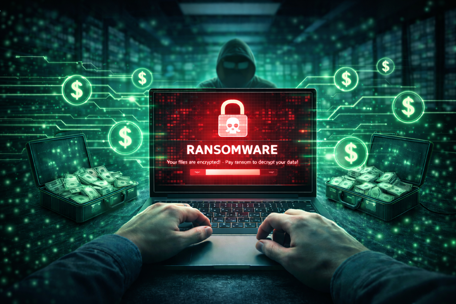 Archivos de trabajo, bases de datos, documentos financieros, copias locales… todo puede quedar inaccesible en cuestión de minutos. Cuando el proceso termina, aparece el mensaje de rescate.